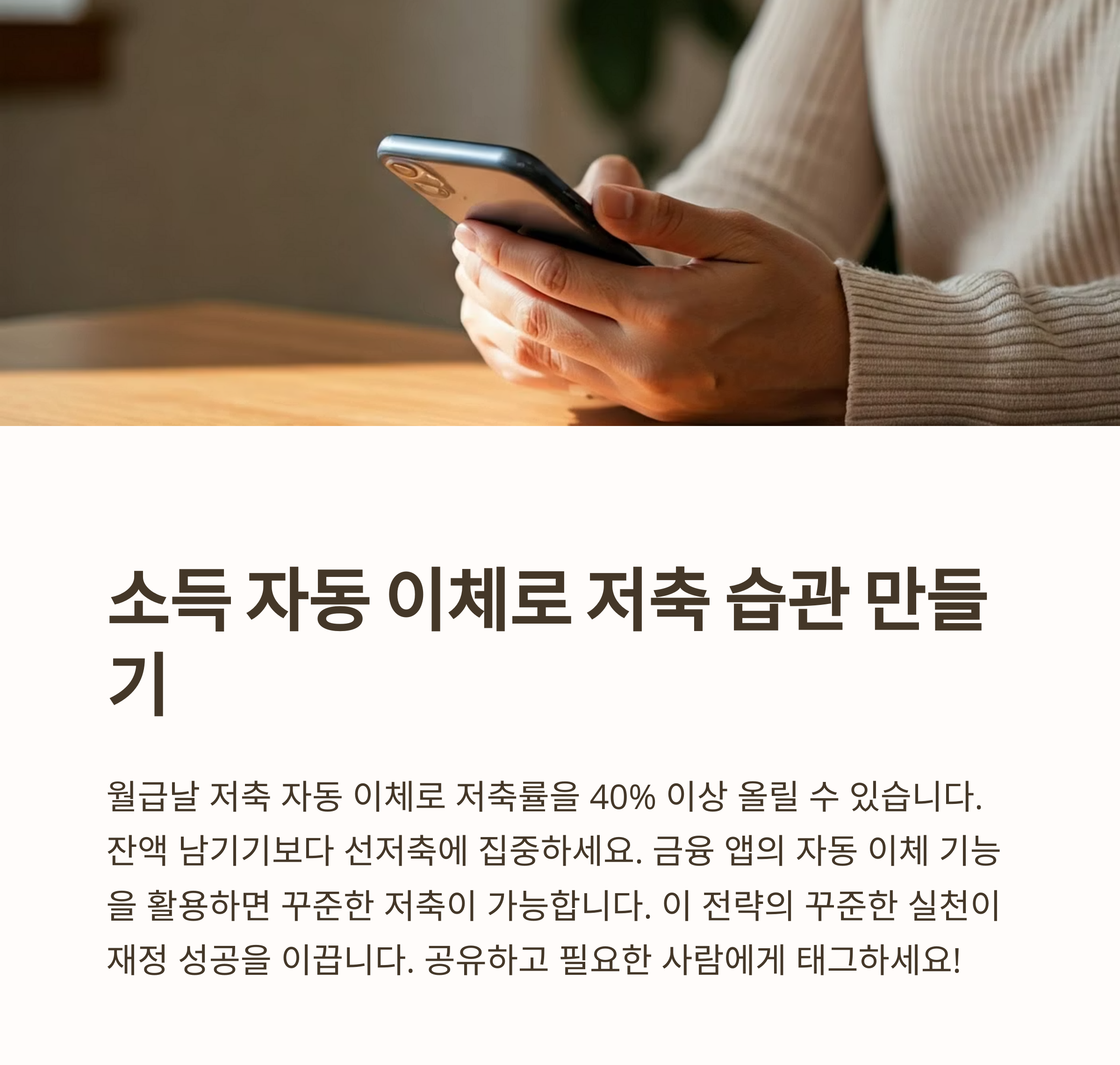 "월급이 들어오면 무조건 일정 금액을 저축 계좌로 자동 이체하세요" 소득이 생긴 순간 저축을 먼저 하면