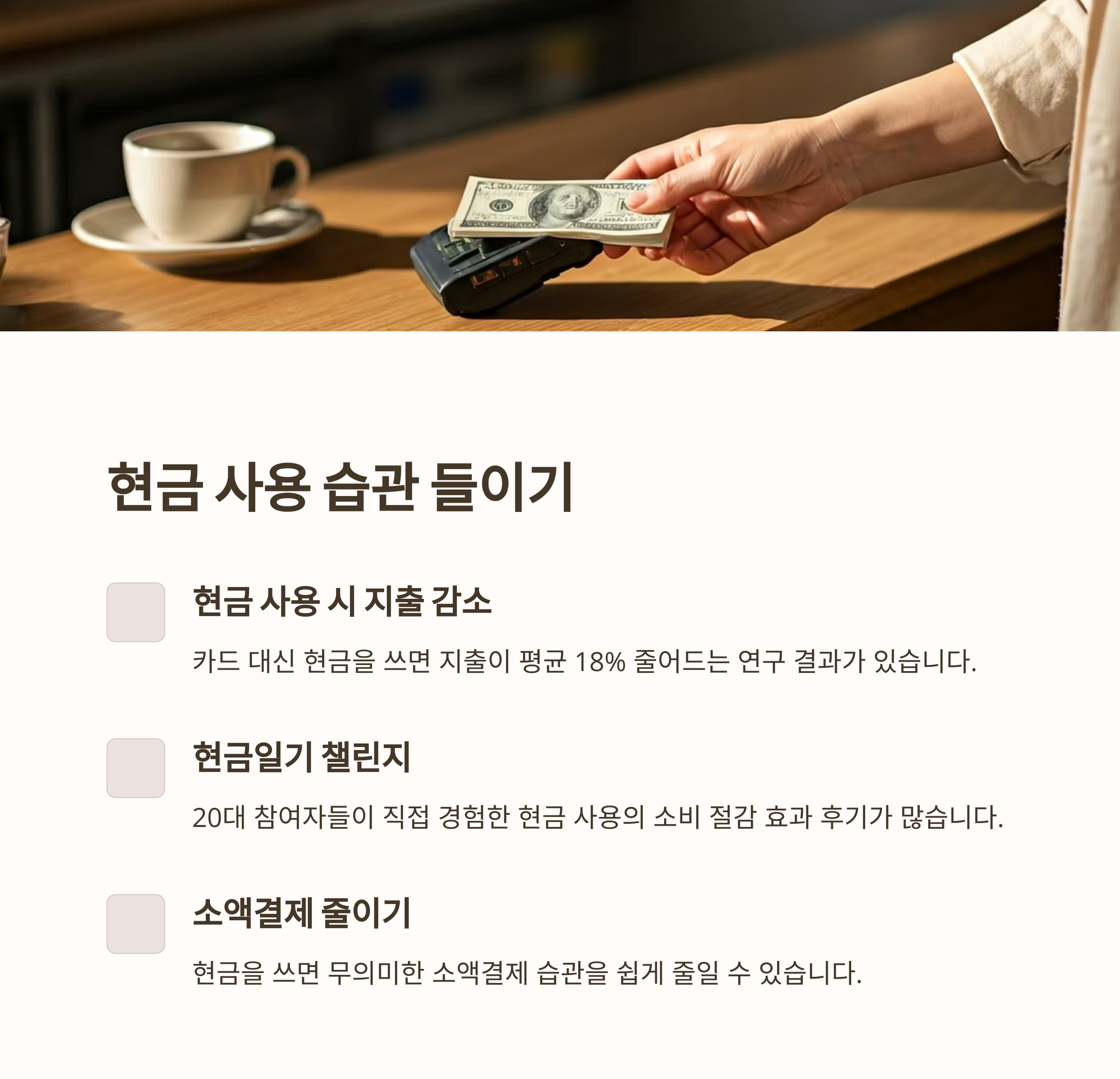 "신용카드보다 현금을 쓰는 습관이 절약에 더 효과적입니다" 현금은 실질적으로 지출하는 느낌이 강해